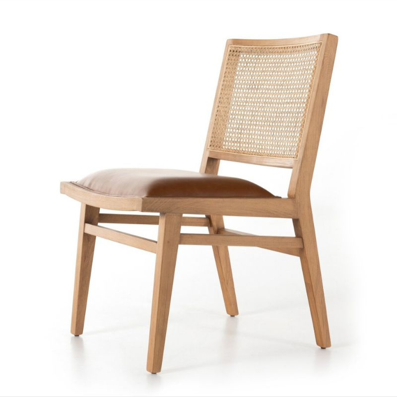 This chair apply acacia solid wood,bamboo cane,40 density from with fabric coustmer choice leatherite,velvet, kadi material.