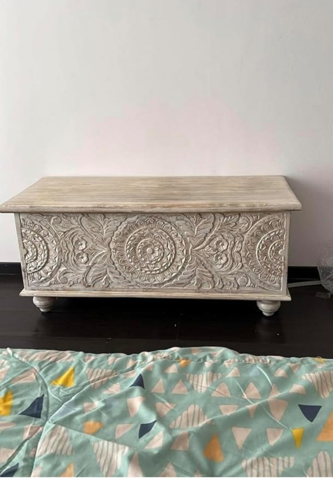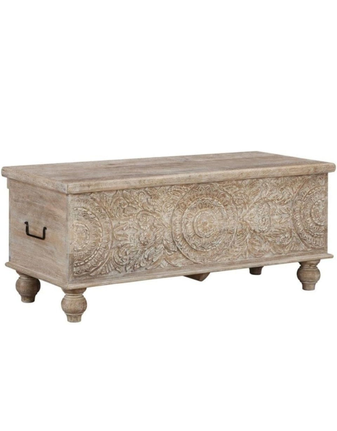 This carving box made by mango wood and iron accessories apply.