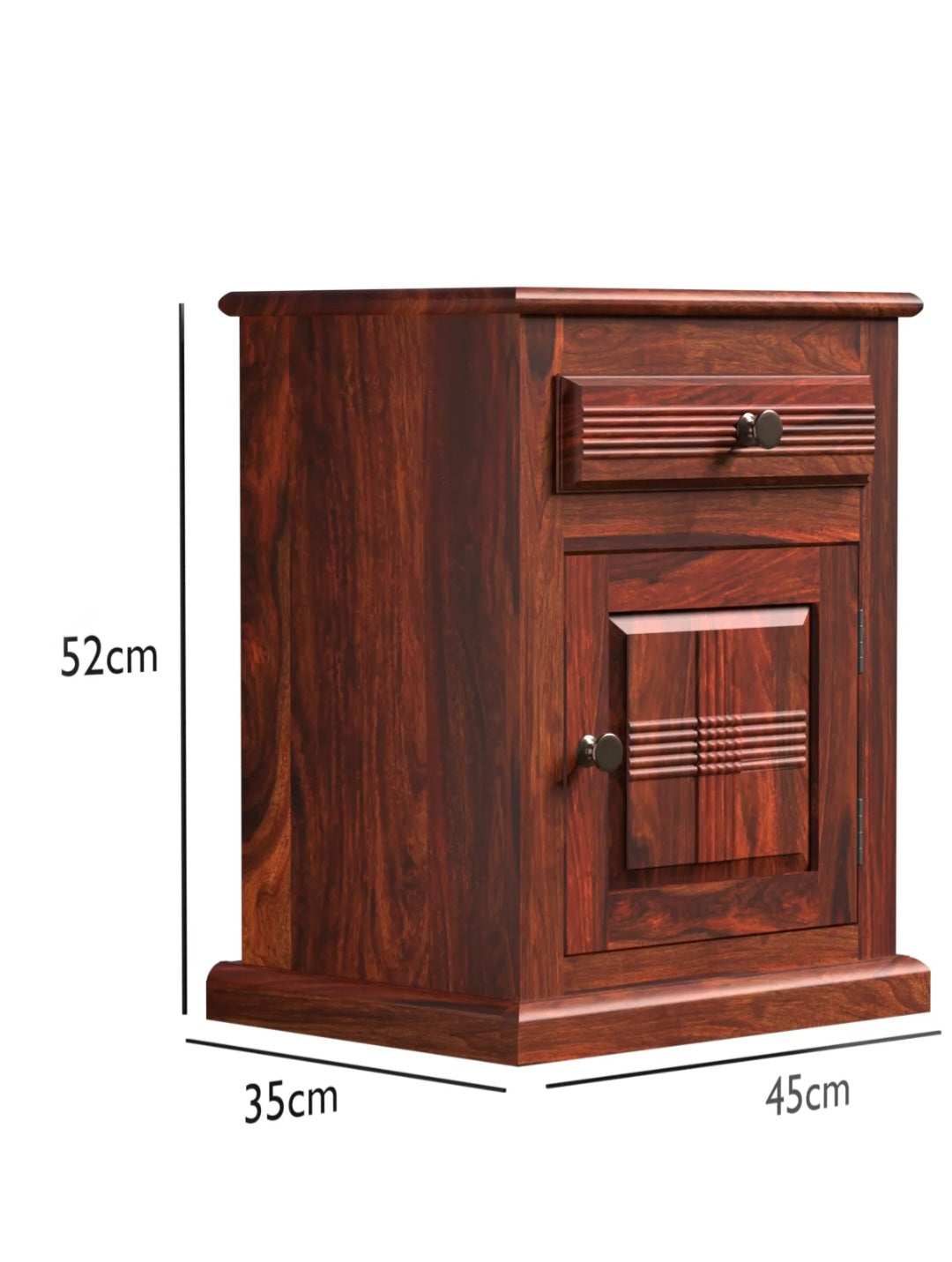 This bedside table made by Sheesham solid wood with engineering wood.