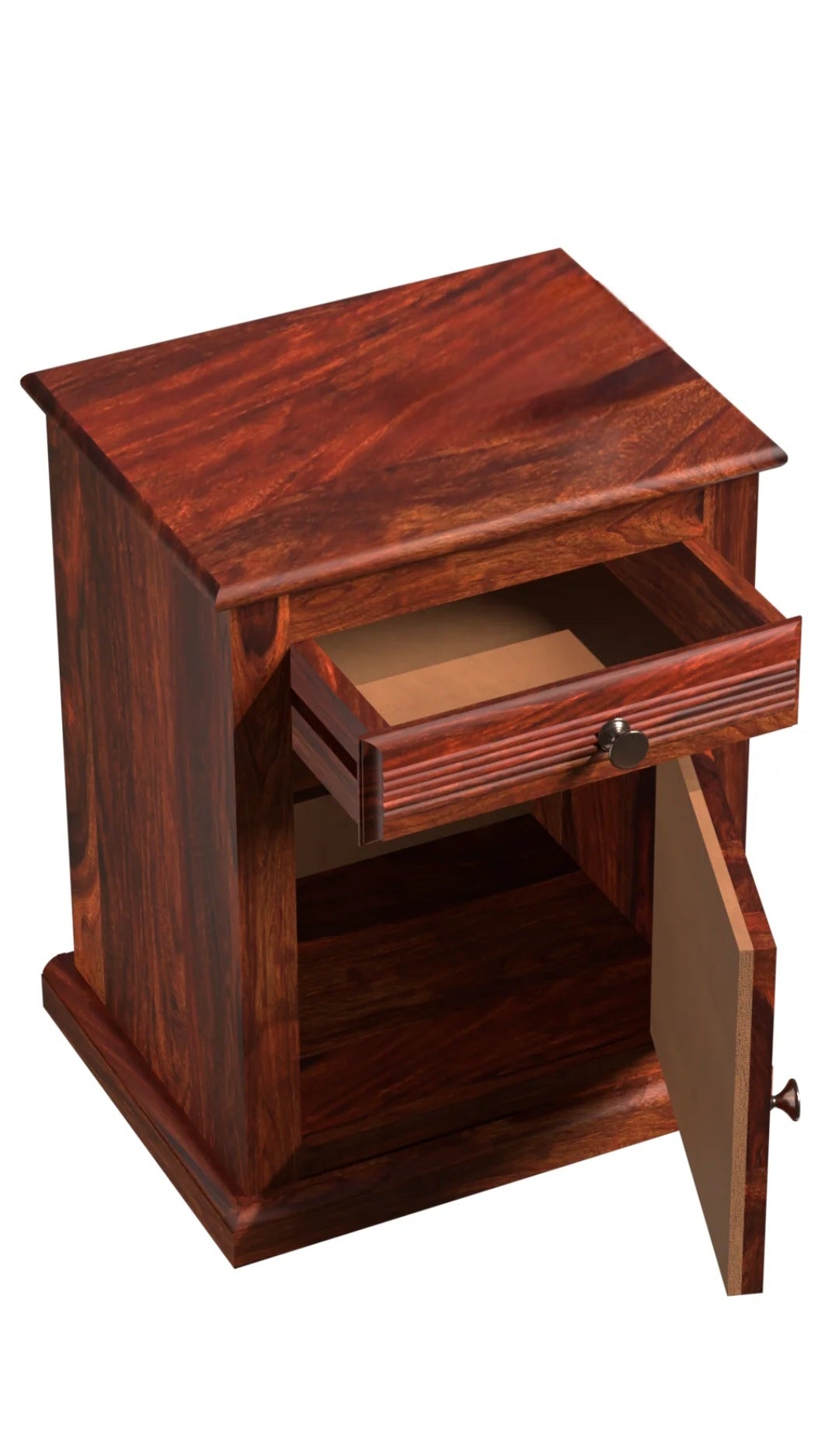 This bedside table back side,drawer bottom area and door back side engineering wood apply remaining sheesham wood apply.