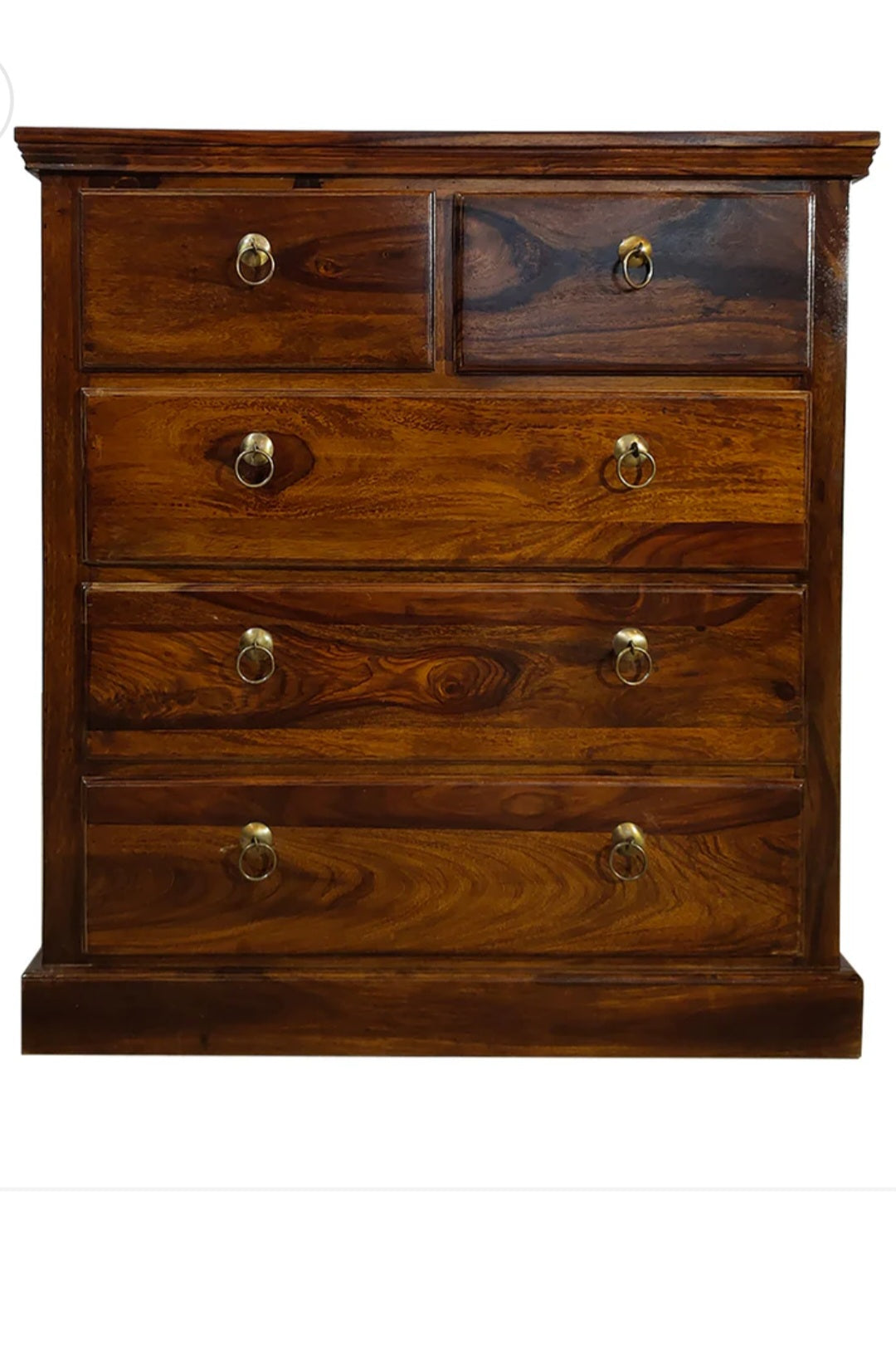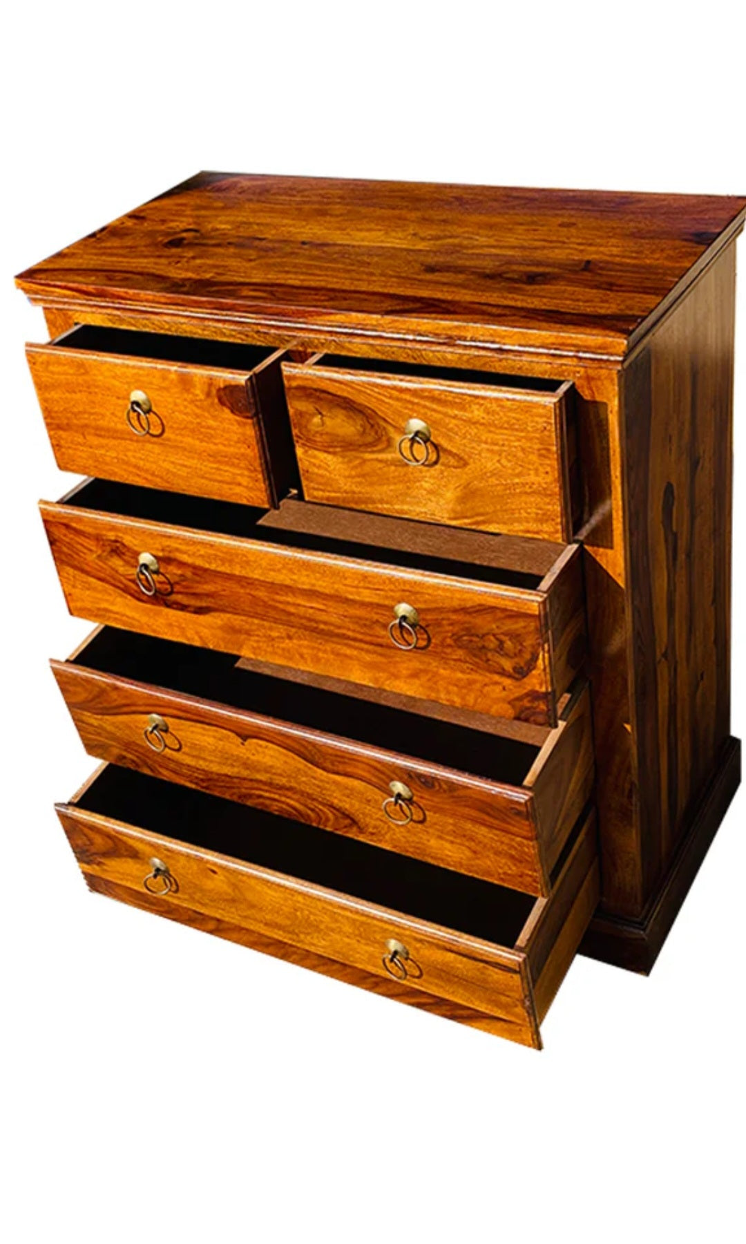 This chest of drawer made by Sheesham solid wood and secondary material engineering wood.