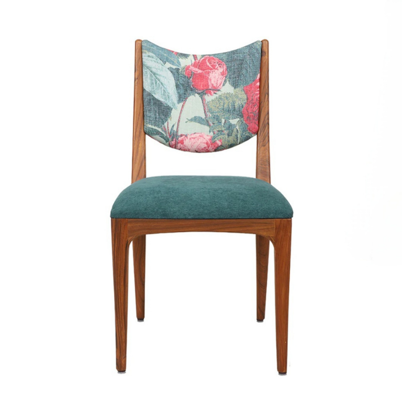 This chair apply acacia solid wood and sitting area and back rest area apply 32 density foam and flowers print fabric apply.